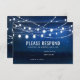 Elegant blue night and silver string lights wedding rsvp card. The text can be changed using right the "Details" menu. To fit everything to your needs please click the "Customise" button and you can text style, backround and paper colour change. Other colours are available. You can change the paper type on the right side of the "Compare Papers" menu. Please contact me if you need help, for matching items or you have special wishes.
