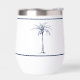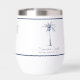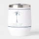 Add your own special touch to this simply elegant tumbler design featuring your family name or phrase and established date and palm tree in blue along with a blue border.