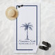 Add your own special touch to this simply elegant design featuring your family name or phrase and established date in blue text and blue coconut palm tree framed in a blue border.