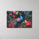 Elegant Blue Peacock in Colourful Garden Canvas Print