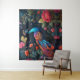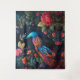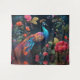 Elegant Blue Peacock in Colourful Garden Tapestry