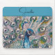 Elegant Blue Peacock Watercolor Art Birthday Mouse Pad