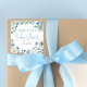 Cheerful white peony flowers and green watercolor leaves form a beautiful border on pretty blue floral spring baby shower stickers. A chic, modern handwritten script for your garden brunch or shower for a pregnant mum expecting a little boy. Lovely accessory for an afternoon tea party favour or invitation.