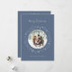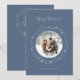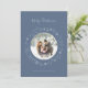 Elegant Blue Photo Handrawn Wreath Holiday Card
