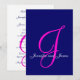Navy Blue and Hot Pink - Elegant Wedding Invitation Monogram Design by Elke Clarke ©. Customise with your monogram, names and wedding colours. Add all your wedding information on the back of the card using Zazzle's easy to use menu prompts. Comes with blank white envelope.