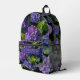 Elegant blue purple hydrangea floral monogram printed backpack