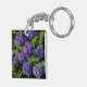Elegant blue purple magenta green floral hydrangea key ring
