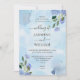 Elevate your wedding celebration with our elegant blue watercolor floral wedding invitation. This stunning invitation features a beautiful blend of delicate blue flowers and soft watercolor backgrounds, creating a romantic and sophisticated ambiance for your special day. The elegant script fonts add a touch of class, making it the perfect choice for couples looking to impress their guests with a stylish and timeless design. Personalise it with your details to make it uniquely yours. Ideal for any wedding theme, this invitation promises to set the tone for an unforgettable celebration. Shop now to create lasting memories.