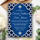 Amaze your guests with this Moroccan style wedding invitation featuring an elegant white quatrefoil pattern and beautiful fleur de lis on top and bottom. Simply add your event details on this easy-to-use template to make it a one-of-a-kind invitation. This card is fully customisable. All texts are editable and background colour can be easily changed to what best fits you.