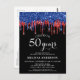 Elegant Blue Red Black Glitter Drip 50th Birthday Postcard