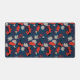Image by Theraphosath | Shutterstock. Image ID: 1051811810 | This pattern features red and tan flowers on a dark blue background.