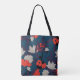 Image by Theraphosath | Shutterstock. Image ID: 1051811810 | This pattern features red and tan flowers on a dark blue background.