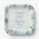Elegant Blue Rose Floral Frame 70th Birthday Party Paper Plate