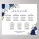 Introducing our stunning wedding seating chart - a masterpiece of design that accommodates up to 70 guests across 7 tables with 10 seats per table. The charming rustic watercolor artwork showcases a delightful combination of roses in shades of dusty blue, navy, and indigo, complemented by sprigs of refreshing eucalyptus leaves and garden greenery. The script calligraphy of the title lends an air of sophistication, and there's ample space below for the happy couple's names and wedding date. Not only does it bring an element of grace and refinement to your wedding reception, but it also helps your guests effortlessly locate their designated seats.
