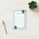 Sweet floral To Do List Post-it® Notes pad featuring the words "To Do List", blue roses, mint and yellow flowers, and green leaves with an off white centre and blue borders against a a sweet baby blue gingham.