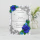 Pretty blue roses and silver leaf pattern frame. This beautiful wedding RSVP/response card is all ready to be personalised for your special wedding day. Personalise the card by changing the text in the fields provided front and back. You can change font style, size, and colour, as well as paper type and style.