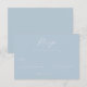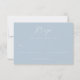 This elegant wedding RSVP card features a minimalist design with a soft pastel blue background and crisp white text, creating a serene and sophisticated look. The layout is clean and well-organized, with ample negative space that highlights the cursive "RSVP" at the top and simple sans-serif fonts for clear communication. Customizable fields allow for personalization, making it perfect for formal events. The overall mood is calm and refined, ideal for couples seeking a polished and modern aesthetic for their special day.