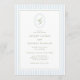Elegant Blue & Sage Striped Wedding Invitation with an oval monogram crest