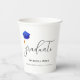 Elegant and modern graduation paper cups with an illustration of a royal blue graduation cap. The text has a beautiful script typography. Great for your kids' graduation party. Illustrated and designed by Patricia Alvarez.