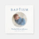 Personalised Modern Blue Script Photo Baptism White Napkins.