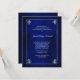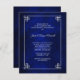 This is a stylish, rich looking 25th Wedding Anniversary Celebration invitation for any season. A classy, corner decorated geometric silver frame encloses your text, which is also in silver. The images and text are placed on a royal blue gradient background that almost glows! The back of the invitation has the same blue background. Very elegant!