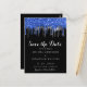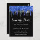 Elegant Blue Silver Glitter Drips Save The Date Postcard