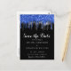 Elegant Blue Silver Glitter Drips Save The Date Postcard