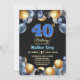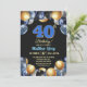 Elegant Blue Silver Gold 40th Birthday Party Invitation