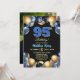 An elegant modern design featuring blue 95 number with gold edges and balloons with silver, blue and gold glitter and a special photo of the birthday person on the back of the invitation. Customize the details for a unique and chic Birthday Celebration.