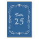 Elegant Blue & Silver Wreath Monochromatic Wedding Table Number