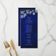 This is a stylish, rich looking wedding menu with the text in silver, and pretty silver white snowflakes on an elegant royal blue gradient background. The back of the card is the same royal blue. This card matches the "Elegant Blue Snowflake Winter Wedding Invitations" in my store. It can also be used for a variety of other formal winter dinner events.