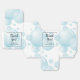 Elegant blue soap bubble boy's baby shower party favour box. Cute pastel box design with custom thank you message and name. Chic brush script typography template with fancy square border. Fun give away for guests, friends and family. Personalised babyshower party supplies for the celebration of a new baby. Add the name of your newborn child on the front and back. Say thanks with a little present. Fill the box with candy, treat or a little gift. It's a boy! Hooray!