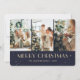 Modern blue photo Merry Christmas card featuring a collage of three photos and little stars. Easily personalise this photo Christmas card with your photos and text.