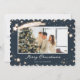 Elegant Blue Stars Snow Photo Merry Christmas Card