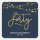 This elegant 40th Birthday Party square sticker feature strings of lights and the word "Forty" in faux gold foil against a dark blue background. Check out other matching items here https://www.zazzle.com/collections/strings_of_lights_faux_gold_celebration_collection-119311942951401241?rf=238364477188679314