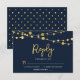 This elegant Blue Strings of Lights RSVP card features strings of lights and the word "Reply" in faux gold foil against a dark blue background. Card has a polka dot pattern back side. Check out other matching items here https://www.zazzle.com/collections/strings_of_lights_faux_gold_celebration_collection-119311942951401241?rf=238364477188679314
