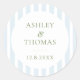 Elegant Blue Stripes Monogram Classic Round Sticker