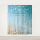 Create your own fun elegant beach photo backdrop for destination weddings, nautical bridal showers, a tropical birthday party, and other seaside occasions. This rustic watercolor design illustrated by the artist Raphaela Wilson depicts soft blends of ocean blue and teal, along with tan gold for a sparkling sand effect. The botanical palm tree leaf, starfish and romantic string lights can be repositioned, and are optional. If you customise the beach design further, you can reveal white tropical plumeria flowers too! Make these DIY personalised photo backdrops unique by adding your custom text (such as a wedding date, name of the bride and groom, etc.). It's simple to repurpose this wedding photo backdrop for a different event or for general photography purposes - even change the script calligraphy and modern typography to your liking. Enjoy! Category: hanging wall backdrops for parties; floral beach backdrops with shells and starfish; and nautical wedding backdrop tapestries. Beach themed party photo backdrop colours: deep ocean blue, light teal green, aqua turquoise, vintage gold and white.