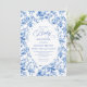 Elegant Blue Toile Rose Floral Baby Shower Invite