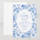 Create a timeless first impression with this baby shower invitation featuring elegant French toile de jouy roses in refined shades of navy blue, royal blue, dusty blue, and deep blue, inspired by classic chinoiserie floral design. This sophisticated style blends heritage elegance with modern charm, making it perfect for a memorable baby shower celebration.