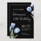 Elegant Blue & Black Tulip 25th Birthday Invitation | Modern Classy Floral Party Invite