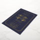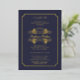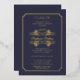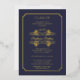 A simple yet elegant scroll and scalloped frame real gold foil and dark blue graduation party invitation design that can be personalised for high school, college or university graduations. Design by Holiday Hearts Designs (all rights reserved).