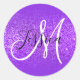 Elegant Blue Violet Ombre Glitter Monogram Classic Round Sticker