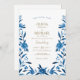 Elegant blue Watercolor floral Chinoiserie Wedding Invitation