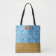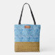 Elegant Blue Watercolor Geometric Rattan Look Tote Bag