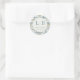 This elegant wedding sticker features a minimalist circular design with a textured, watercolor-like background in soft blues, beige, and hints of yellow. The central text is arranged vertically using a clean serif font, creating a sophisticated hierarchy that emphasizes gratitude. Perfect for adding a personal touch to wedding favors or thank-you notes, this sticker combines modern aesthetics with vintage charm, conveying warmth and celebration through its muted color palette and graceful layout.