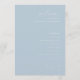 This wedding program features a minimalist and elegant design with a soft pastel blue background, creating a serene and calming atmosphere. The layout is centred and vertically aligned, emphasizing clarity and simplicity, while the typography combines cursive and sans-serif fonts to add sophistication and readability. Perfect for couples seeking a contemporary and formal look, this template allows customisation of names, dates, and locations, making it ideal for personalising your special day. The absence of additional motifs keeps the focus on the text, ensuring a clean and modern aesthetic that conveys tranquillity and celebration.