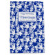 Elegant, chic design featuring a beautiful and modern white floral pattern on azure blue background. Delicate blue frame and elegant fonts for birthday wishes and your personalisation.