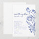 Elegant Blue White Line Art Floral Bridal Shower Invitation