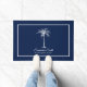 Add your own special touch to this simply elegant design featuring your family name or phrase and established date in white text and palm tree framed in a white border over a navy blue background.